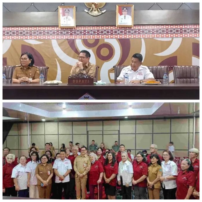 MINUT, TelusurInformasiNews.id – Dalam upaya menjaga warisan budaya di tengah derasnya arus modernisasi, Pemerintah Kabupaten Minahasa Utara (Minut) menunjukkan komitmen nyata melalui pertemuan langsung Bupati Joune Ganda dengan pengurus Lembaga Adat Paimpuluan Nuwu Ne Tonsea (PNNT). Pertemuan yang digelar di Kantor Bupati tersebut, fokus membahas finalisasi kamus bahasa Tonsea sebagai langkah strategis pelestarian bahasa daerah yang terancam punah. Selasa, (7/4/2026).