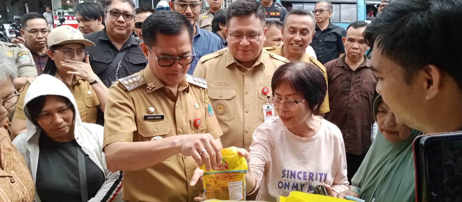 Bupati Joune Ganda dan Wakil Bupati Kevin William Lotulung Sidak Pasar Murah Airmadidi.