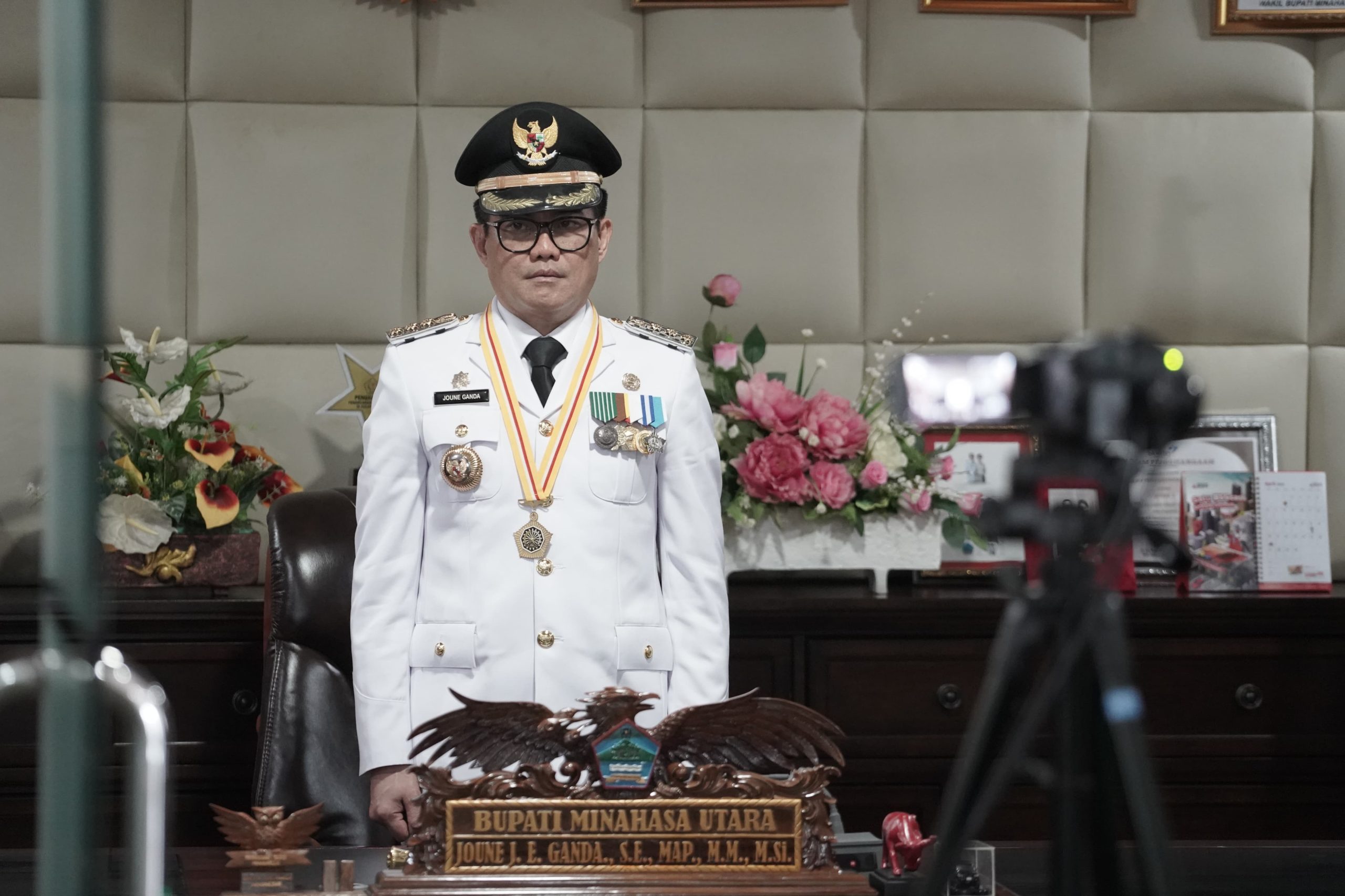MINUT, TelusurinformasiNews.id – Bupati Minahasa Utara, Joune Ganda, mengikuti upacara peringatan Hari Ulang Tahun Otonomi Daerah (OTDA) XXIX melalui Zoom meeting yang diselenggarakan di Kota Balikpapan, Provinsi Kalimantan Timur, diadakan di Ruang Kerja Bupati di lantai 3. Jumat ,(25/4/2025).