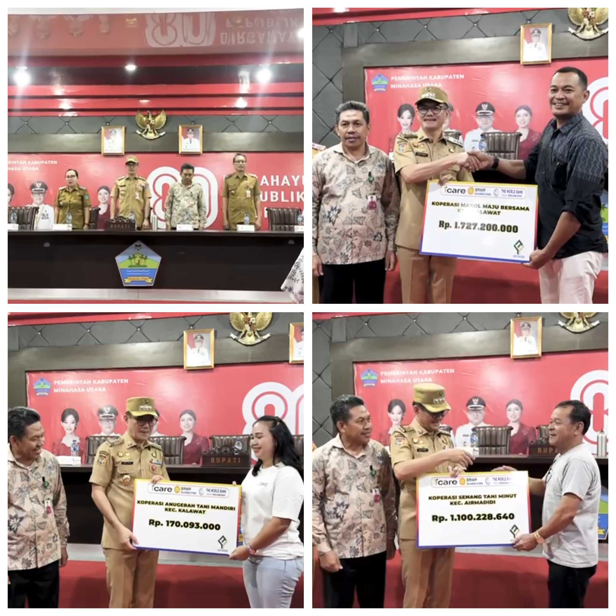 Selain dari Koperasi Makol Maju Bersama, lima koperasi lainnya juga menerima bantuan dengan nilai berkisar dari Rp170 juta hingga Rp1,7 miliar, yaitu Damai Sejahtera Klabat, Linensoan Maju Bersama, Anugrah Tani Mandiri, Senang Tani Minut, dan Sinar Pagi Sejahtera.