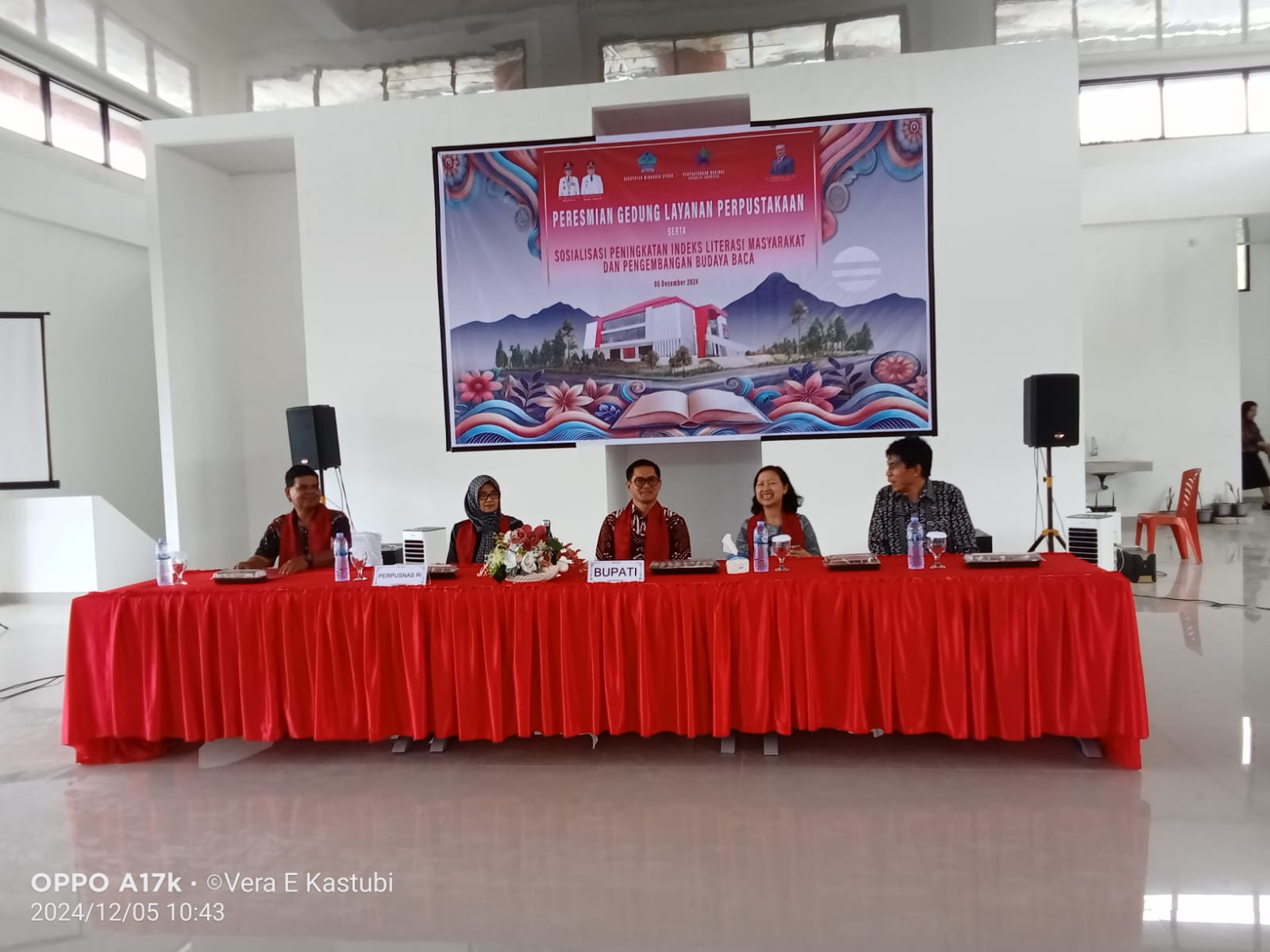 Kepala Dinas Perpustakaan dan Kearsipan Minahasa Utara Alfred Pusungulaa dalam laporannya mengatakan, dalam rangka memperkuat layanan perpustakaan serta meningkatkan indeks literasi masyarakat dan mengembangkan budaya membaca, hari ini kami meresmikan Gedung Layanan Perpustakaan di Minahasa Utara. Acara ini juga bertujuan untuk melakukan sosialisasi terkait upaya peningkatan literasi masyarakat.
