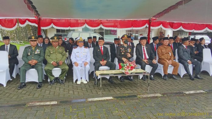 Bupati Joune Ganda membacakan pidato kepala badan pembinaan ideologi Pancasila Republik Indonesia (BPIP) Prof. Drs. Yudian Wahyudi, M.A., Ph.D.mengatakan, “Kita kembali memperingati momentum yang sangat penting dalam sejarah bangsa Indonesia: Hari Lahir Pancasila. Hari ketika kita tidak hanya mengenang rumusan dasar negara, tetapi juga meneguhkan kembali komitmen kita terhadap nilai-nilai luhur yang menjadi pondasi berdirinya Negara Kesatuan Republik Indonesia,” ucap Bupati Joune Ganda.