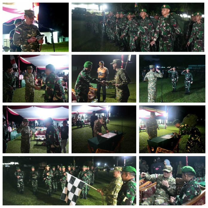 Upacara berlangsung di Lapangan Kompi C Zipur Minahasa Utara sekitar pukul 04.00 WITA. Dalam kegiatan ini, Bupati Joune Ganda juga secara resmi melepas para prajurit yang akan melanjutkan perjalanan mereka ke etape selanjutnya.