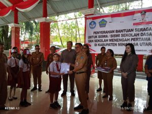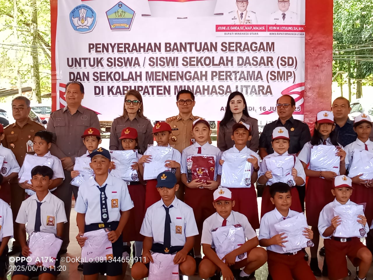 Sebagai bentuk komitmen pemerintah dalam rangka mendukung pendidikan yang berkualitas, Bupati Joune Ganda menyerahkan bantuan seragam sekolah kepada siswa SD dan SMP yang ada di Kabupaten Minahasa Utara.