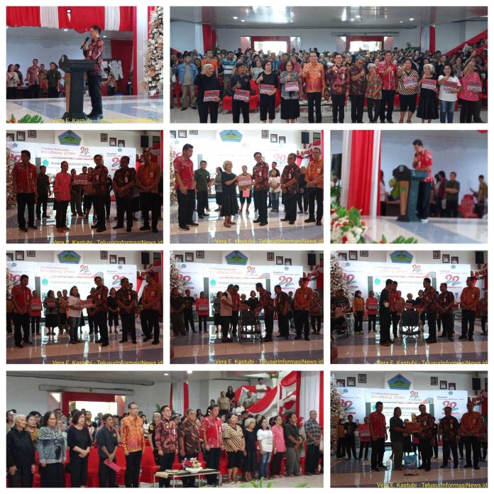 MINUT, TelusurInformasiNews.id.- Pemerintah Kabupaten Minahasa Utara, Bupati Joune Ganda mengadakan bantuan Penyerahan santunan dana duka tahap II Tahun Anggaran 2025 sebagai bentuk kepedulian kepada keluarga yang ditinggalkan, serta menyerahkan bantuan kursi roda dan bantuan sembako kepada lansia yang ada di kabupaten Minahasa utara. Melalui Dinas Sosial. Acara penyerahan bantuan ini berlangsung di Atrium Kantor Bupati Minahasa Utara. Kamis, (18/12/2025).