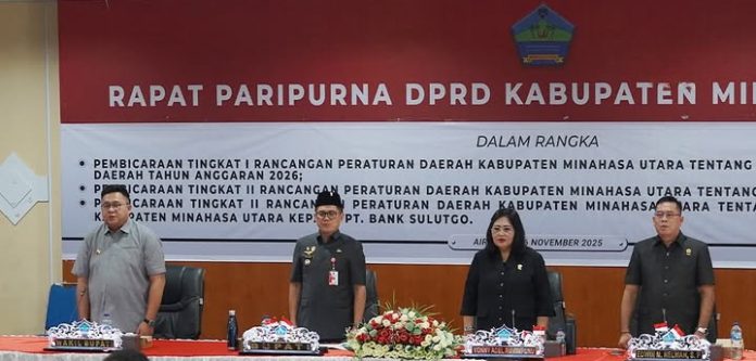 Rapat Paripurna yang dipimpin oleh Ketua DPRD Kabupaten Minahasa Utara meliputi tiga agenda utama. Pertama adalah Pembicaraan Tingkat I mengenai Rancangan Peraturan Daerah (Ranperda) tentang Anggaran Pendapatan dan Belanja Daerah (APBD) untuk Tahun Anggaran 2026. Selain itu, rapat ini juga mendiskusikan Ranperda tentang Penyelenggaraan Bantuan Hukum serta Ranperda mengenai Penyertaan Modal Pemerintah Kabupaten kepada PT. Bank SULUTGO. Keberadaan berbagai pihak, termasuk para Pimpinan dan Anggota DPRD serta delegasi dari instansi lain, turut memberikan kontribusi dalam proses pembahasan ranperda ini.