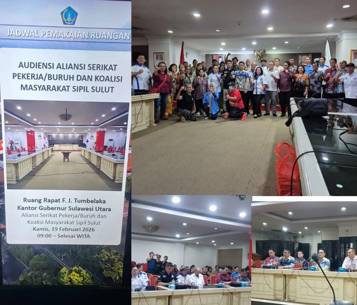 SULUT, TelusurInformasiNews.id – Perjuangan pekerja dan buruh di Sulawesi Utara untuk mendapatkan keadilan dan kepastian penanganan dinilai belum menunjukkan perkembangan signifikan. Sekretaris FSPMI Sulawesi Utara, Sanni Lungan, menyatakan berbagai upaya telah ditempuh secara konstitusional oleh aliansi serikat pekerja dan koalisi masyarakat sipil, mulai dari penyampaian aspirasi, rencana aksi damai, hingga dialog dengan pihak terkait. Kamis (19/02/2026).