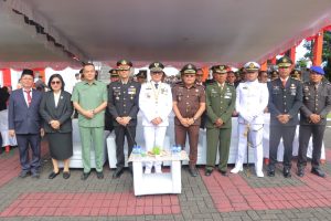 Hadir dalam upacara hari Bhayangkara ke – 79 Bupati Minahasa Utara, Dr (Cand) Joune Ganda SE.MAP.MM.Msi. Dan Ketua Bhayangkari Cab.Minut Ny. Atika Auliya Djabar.