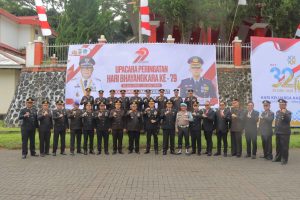 Sambutan Kepala Kepolisian Negara Republik Indonesia,  Jenderal Polisi Listyo Sigit Prabowo yang dibacakan oleh Kapolres Minahasa utara AKBP Auliya Rifqie A. Djabar, S.I.K. M.Si. mengatakan, Puji dan syukur kita panjatkan kehadirat Tuhan Yang Maha Esa, karena atas rahmat dan karunianya, pada hari ini kita dapat memperingati Hari Bhayangkara ke-79 dalam suasana yang penuh khidmat dan semangat kebangsaan.