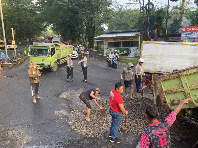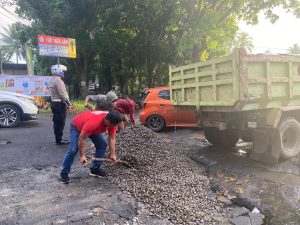 MINUT, Telusurinformasinews.id – Ketua Badan Anti Korupsi, Kolusi dan Nepotisme (BAKKIN) Sulawesi Utara, Calvin Limpek, bersama seorang pengusaha yang memilih untuk tidak disebutkan namanya, melakukan perbaikan jalan rusak di bundaran zero point Minut. Inisiatif ini muncul sebagai bentuk kepedulian terhadap masyarakat Kabupaten Minahasa Utara serta dukungan kepada pemerintah daerah dalam menangani masalah infrastruktur jalan. Rabu, (14/5/2025).