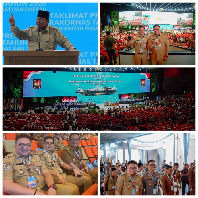 JAKARTA, TelusurInformasiNews.id.- Bupati Minahasa Utara Joune Ganda, bersama dengan Wakil Bupati Kevin Lotulung, menunjukkan dedikasi tinggi mereka dengan hadir dalam Rapat Koordinasi Nasional (Rakornas) Pemerintah Pusat dan Daerah. Kehadiran dua pemimpin ini merupakan sinyal kuat bahwa Kabupaten Minahasa Utara berkomitmen untuk seiring sejalan dengan kebijakan dan visi strategis dari Pemerintah Republik Indonesia. Bertempat di Sentul International Convention Center, Bogor. Senin, (2/2/2026).