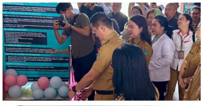 MINUT, TelusurInformasiNews.id – Bupati Minahasa Utara, Joune Ganda secara resmi meluncurkan Program Pemeriksaan Kesehatan Gratis Hari Ulang Tahun (PKG HUT) Tahun 2025. Kegiatan ini diadakan di sepuluh Puskesmas dan merupakan bagian dari upaya pemerintah dalam meningkatkan kesadaran masyarakat akan pentingnya kesehatan. Selasa (11/3/2025).