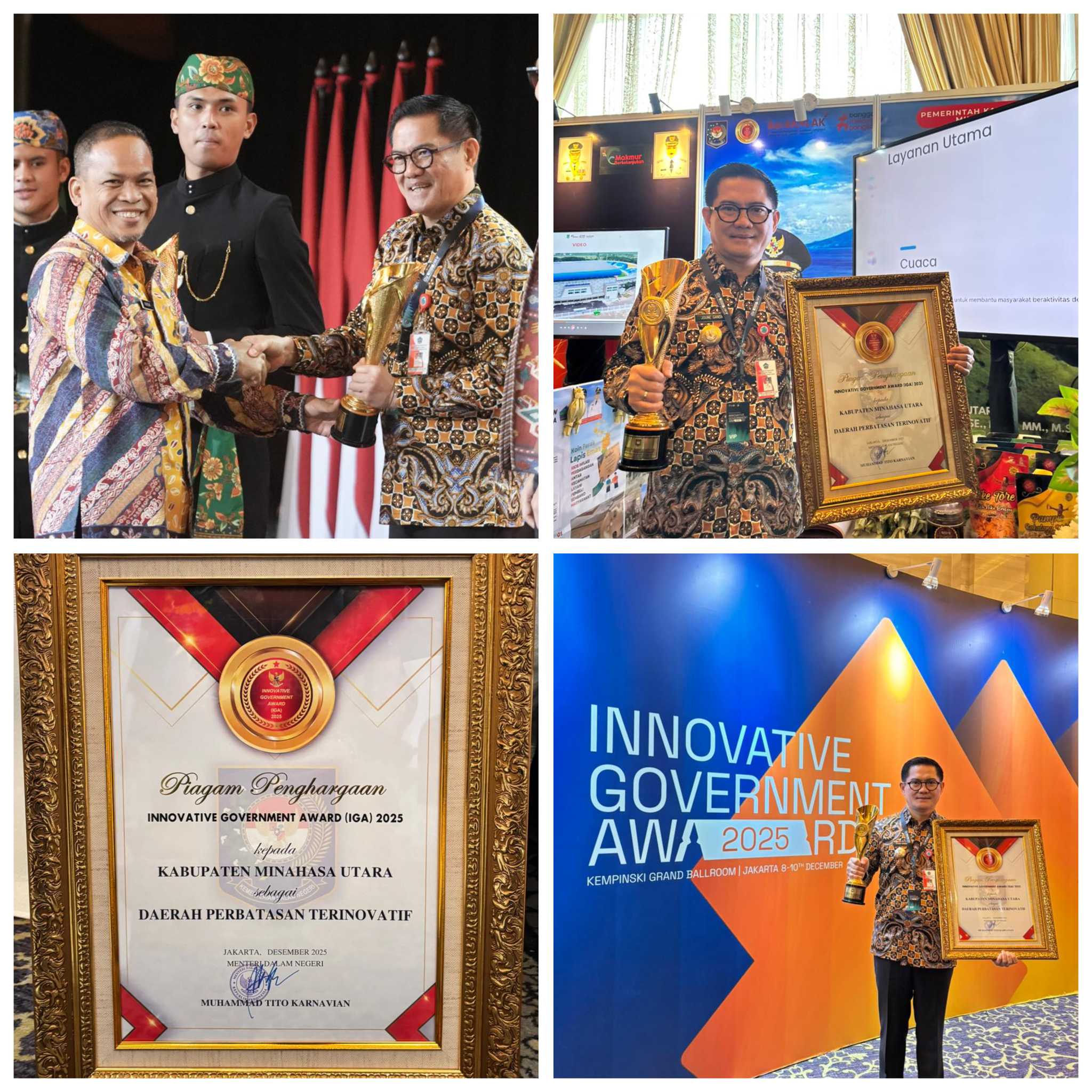 MINUT, TelusurInformasiNews.id.-Minahasa Utara telah berhasil menciptakan prestasi yang membanggakan di tingkat nasional, menunjukkan kemajuan yang signifikan dalam inovasi pemerintah daerah. Di bawah kepemimpinan Bupati Joune Ganda, wilayah ini dinyatakan sebagai Kabupaten Terinovatif Kategori Kawasan Perbatasan Tahun 2025. Penghargaan bergengsi tersebut diserahkan pada ajang Penganugerahan Innovative Government Award (IGA) yang digelar BSKDN Kementerian Dalam Negeri di Jakarta. Rabu (10/12/2025).