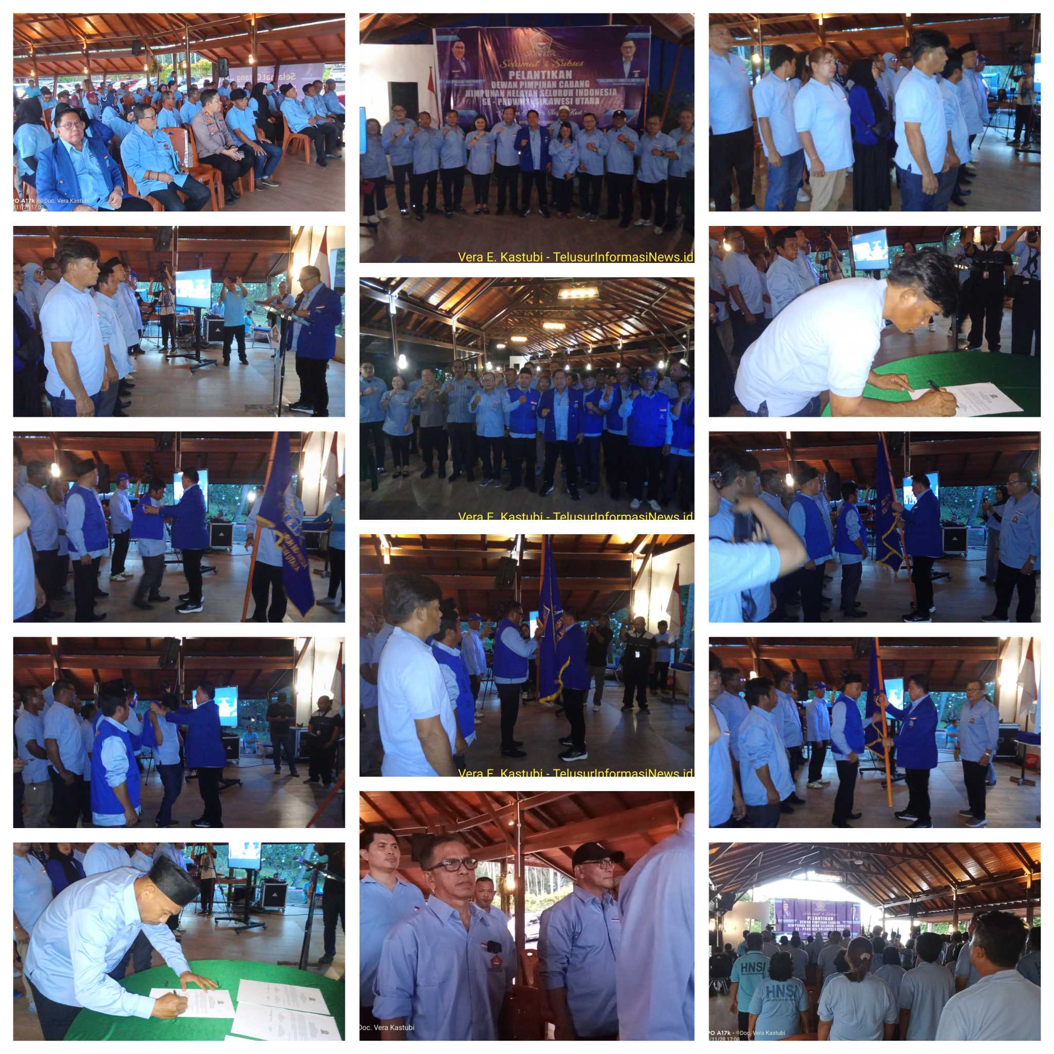 MINUT, TelusurInformasiNews.id. – Dewan Pimpinan Himpunan Nelayan Seluruh Indonesia (HNSI) Provinsi Sulawesi Utara, dibawah kepemimpinan Joune Esau Ganda mengadakan Pelantikan Dewan Pimpinan Cabang (DPC) Himpunan Nelayan Seluruh Indonesia (HNSI) Provinsi Sulawesi Utara berlangsung meriah di Raewaya Resort, Desa Kasawari, Air Tembaga, Bitung. Jumat (28/11/2025).