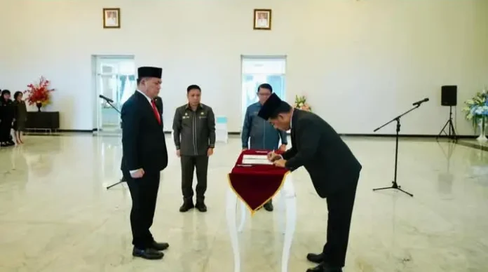 SULUT, TelusurinformasiNews.id – Gubernur Sulawesi Utara, Mayjen TNI Purn Yulius Selvanus SE, telah melantik Johnny Suak, SE, MM sebagai Kepala Badan Kesatuan Bangsa dan Politik (Kesbangpol) Sulut di Wisma Gubernuran Sulut. Sabtu, (5/4/ 2025).