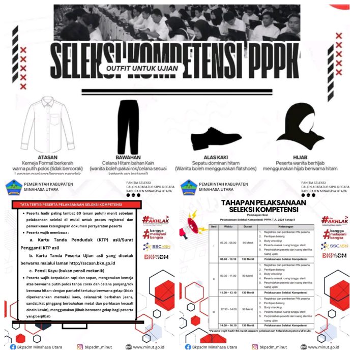 MINUT, TelusurinformasiNews.id. -Pemerintah Kabupaten Minahasa Utara (Pemkab Minut), melalui Badan Kepegawaian dan Pengembangan Sumber Daya Manusia (BKPSDM), mengumumkan penyelenggaraan Seleksi Kompetensi Pegawai Pemerintah dengan Perjanjian Kerja (PPPK) Tahap II Tahun 2024.