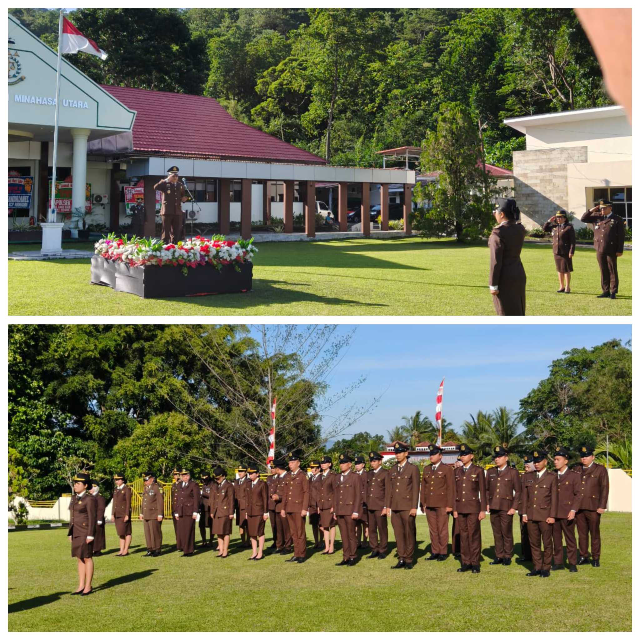 Upacara dipimpin langsung oleh Kepala Kejaksaan Negeri Minut, I Gede Widhartama, SH. MH, yang membacakan amanat dari Jaksa Agung RI, Dr. ST Burhanuddin, S.H., M.H. Peserta upacara terdiri dari seluruh jajaran Kejaksaan Negeri Minahasa Utara, yang turut memberikan penghormatan dalam momen bersejarah ini.