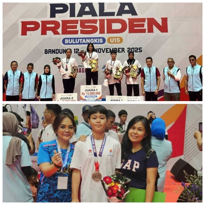 MINUT, TelusurInformasiNews.id.- Pebulu tangkis muda asal Minut, Beverly Grace Ogotan, telah menorehkan prestasi yang membanggakan dengan berhasil meraih Juara III dalam Festival Bulu Tangkis Piala Presiden U15. Kompetisi tersebut berlangsung dari tanggal 10 hingga 16 November di kota Bandung.
