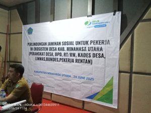 MINUT, TelusurInformasiNews.id -Pemerintah kabupaten Minahasa utara mengadakan Rapat Kerja Bersama terkait BPJS Ketenagakerjaan; Sosialisasi perlindungan jaminan sosial untuk pekarja diEkosistim desa (perangkat desa) kabupaten Minahasa utara. Bertempat di Aula lantai 3 Pemkab minut. Selasa, (24/6/2025).