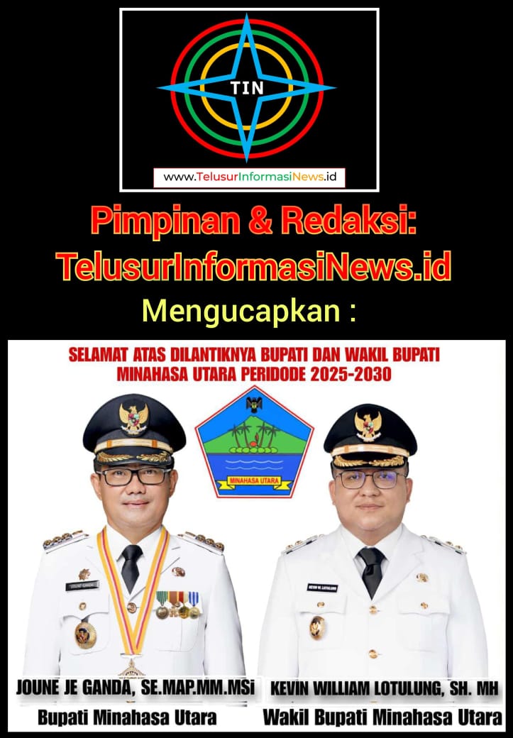 ”SELAMAT DAN SUKSES ATAS DILANTIKNYA BUPATI DAN WAKIL BUPATI TERPILIH KABUPATEN MINAHASA UTARA PERIODE 2025-2030″.