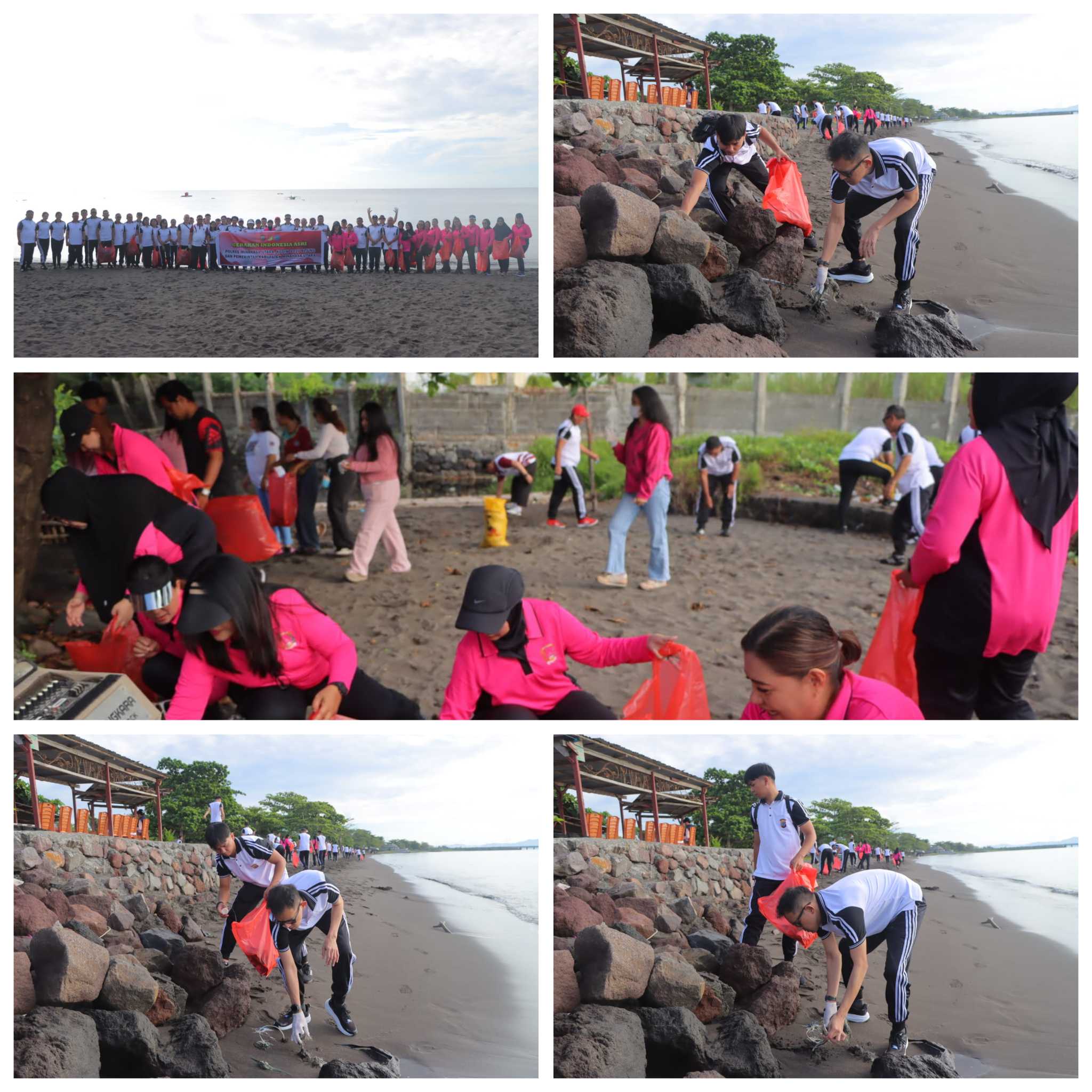 Kegiatan dipimpin langsung oleh Kapolres Minut AKBP Auliya Rifqie A. Djabar, S.I.K., M.Si., didampingi Ketua Bhayangkari Cabang Minut Ny. Atika Auliya Djabar, serta diikuti oleh seluruh Pejabat Utama (PJU) Bhayangkari, anggota Polres Minut, jajaran Polsek, dan pemerintah Kecamatan Kema. Kapolres Minut turun langsung memungut sampah bersama peserta, menunjukkan komitmen nyata dalam mendukung program nasional tersebut.