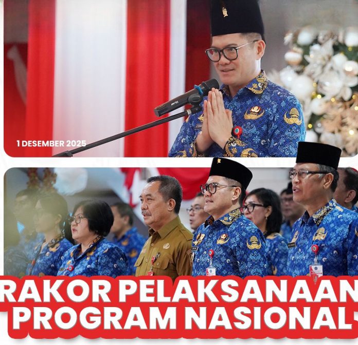 MINUT, TelusurInformasiNews.id.-Pemerintah Kabupaten Minahasa Utara menggelar Rapat Koordinasi (Rakor) Pelaksanaan Program Strategis Nasional. Acara ini dibuka langsung oleh Bupati Minahasa Utara, Joune Ganda, dan dihadiri oleh seluruh Kepala Organisasi Perangkat Daerah (OPD) serta pejabat Pemkab, dengan tujuan menyelaraskan langkah strategis daerah sesuai prioritas pembangunan pemerintah pusat. Bertempat di Atrium Kantor Bupati. Senin, (1/12/2025).
