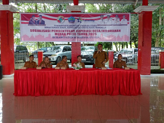 MINUT, TelusurinformasiNews.id -Pemeritah Kabupaten Minahasa Utara, Assisten Satu Umbase Mayuntu, S.Sos., M.Si. Membuka Kegiatan Sosialisasi Pembentukan Koperasi Merah Putih untuk Desa dan Kelurahan di Pendopo Kantor Bupati. Selasa, (6/4/2025).