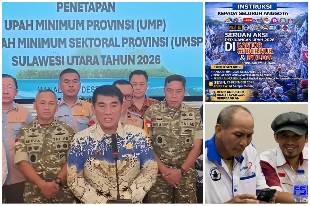 Sementara itu, Ketua FSPMI Sulawesi Utara, Ferdinand Lumenta, menegaskan bahwa dengan ditetapkannya UMP Sulut 2026 sebesar Rp 4.002.630, maka aksi damai perjuangan upah yang sebelumnya direncanakan akan digelar pada 22 Desember 2025 diputuskan untuk ditunda.