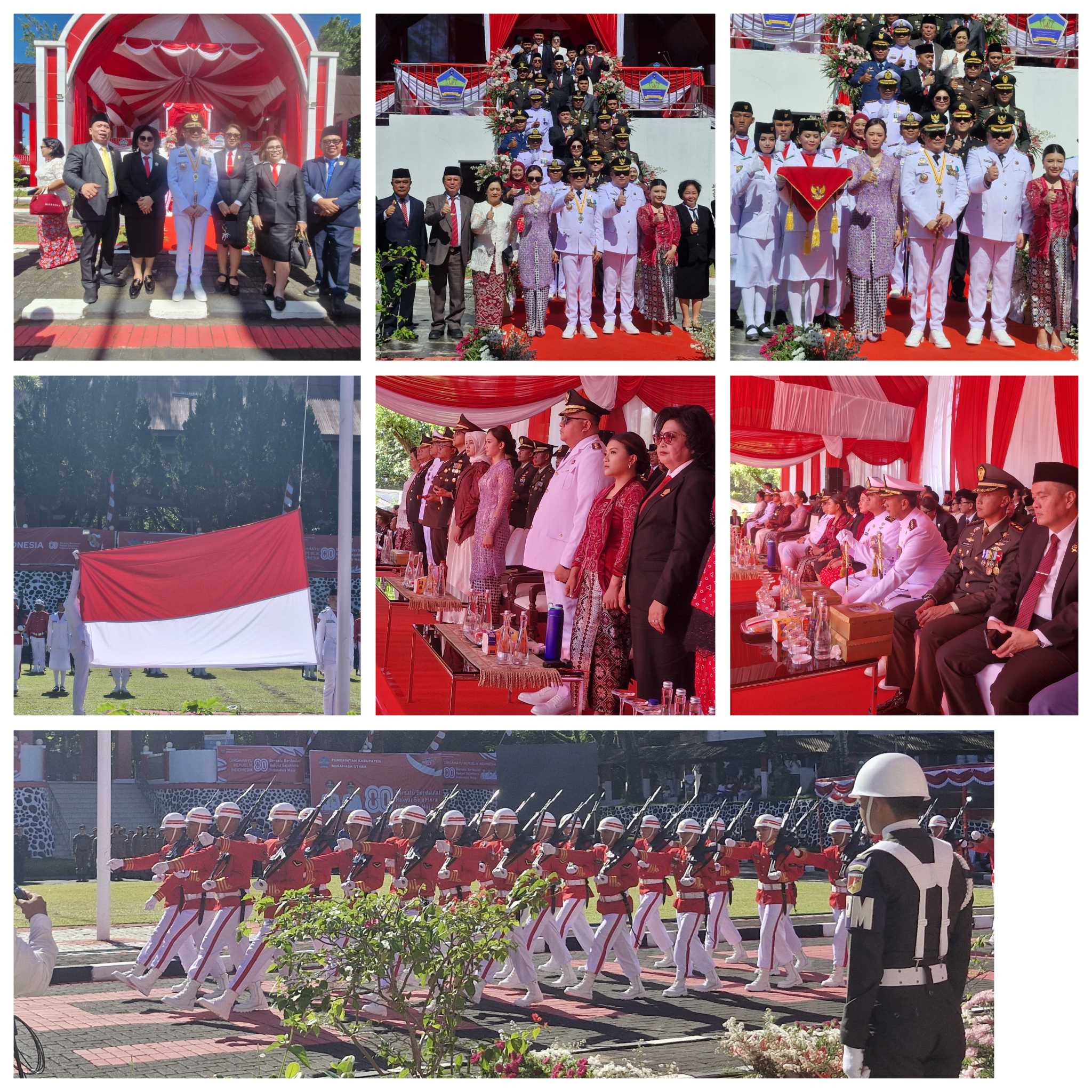 Dalam upacara bendera, Bupati didampingi istri tercinta Rysia Ganda Davega, Wakil Bupati Kevin W Lotulung bersama istri Christy Carla Arina, Kapolres Minut, Dandim Bitung, pimpinan SKPD, dan para undangan. Upacara juga dimeriahkan dengan penampilan atraksi baris-berbaris Polisi Cilik binaan Polres Minahasa Utara.