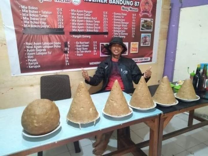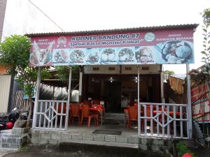Warung “Kuliner Bandung 87 Spesial Bakso Moster Klabat” menawarkan berbagai ukuran bakso, mulai dari yang kecil hingga bakso raksasa dengan berat hampir 3 kg, yang diisi dengan bakso kecil, telur ayam, dan daging cincang.